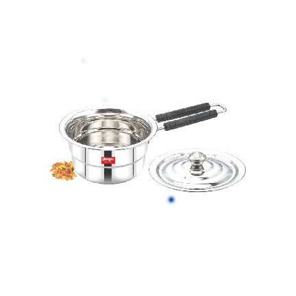 MATERIAL: STAINLESS STEELCAPACITY: 1.7 LITREIS OVEN SAFE : NOHEAVY GAUGE SAUCE PAN WITH INDUCTIONBASE BOTTOM AND STURDY